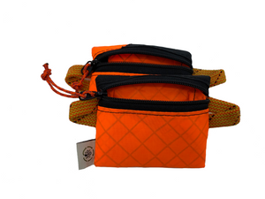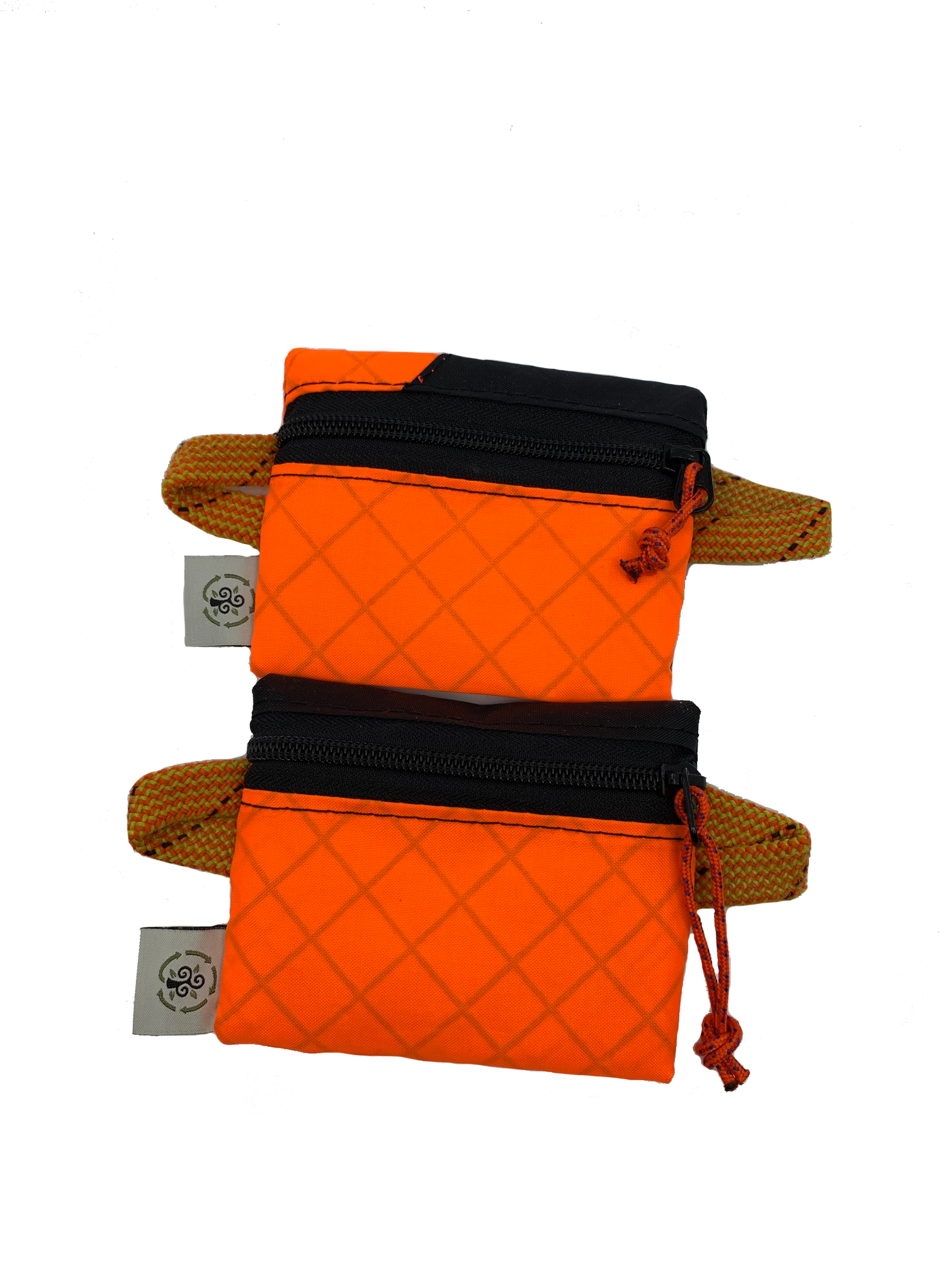 An ultralight pouch tailored for carrying the smallest of items that matter most during your adventures. Average measurements are 5” w x 4” h x 1”, it’s designed for precision packers, outdoor explorers, and minimalists who prioritize lightweight, reliable gear. Securely store anything from a EarPods or wireless earbuds, micro first aid supplies, to cash/cards or everyday carry items, knowing they’ll stay dry and accessible. Crafted from leftover dimension polyant sailcloth that is leftover from manufacturing larger bags.  The inner liner is made with waterproof Eco-Pac® EPX200 laminates and YKK® #5 Coil zippers, this pouch offers durability, while upycling hard to recycle bike tubes.
